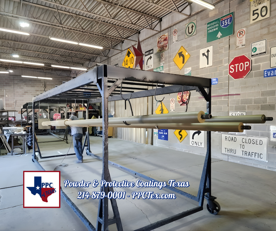 We’re Powder & Protective Coatings Texas, proud to serve the entire Dallas and Fort Worth Area with top-notch custom fabrication and coating services. We’re excited to share a sneak peek inside our shop with these two photos!
